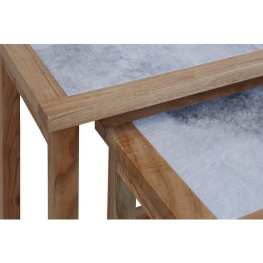 Womad Small Set Of 2 Wooden Side Tables With White Marble Tops