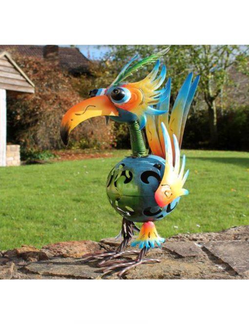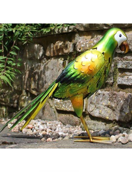 Hand Painted Metal Green Parrot