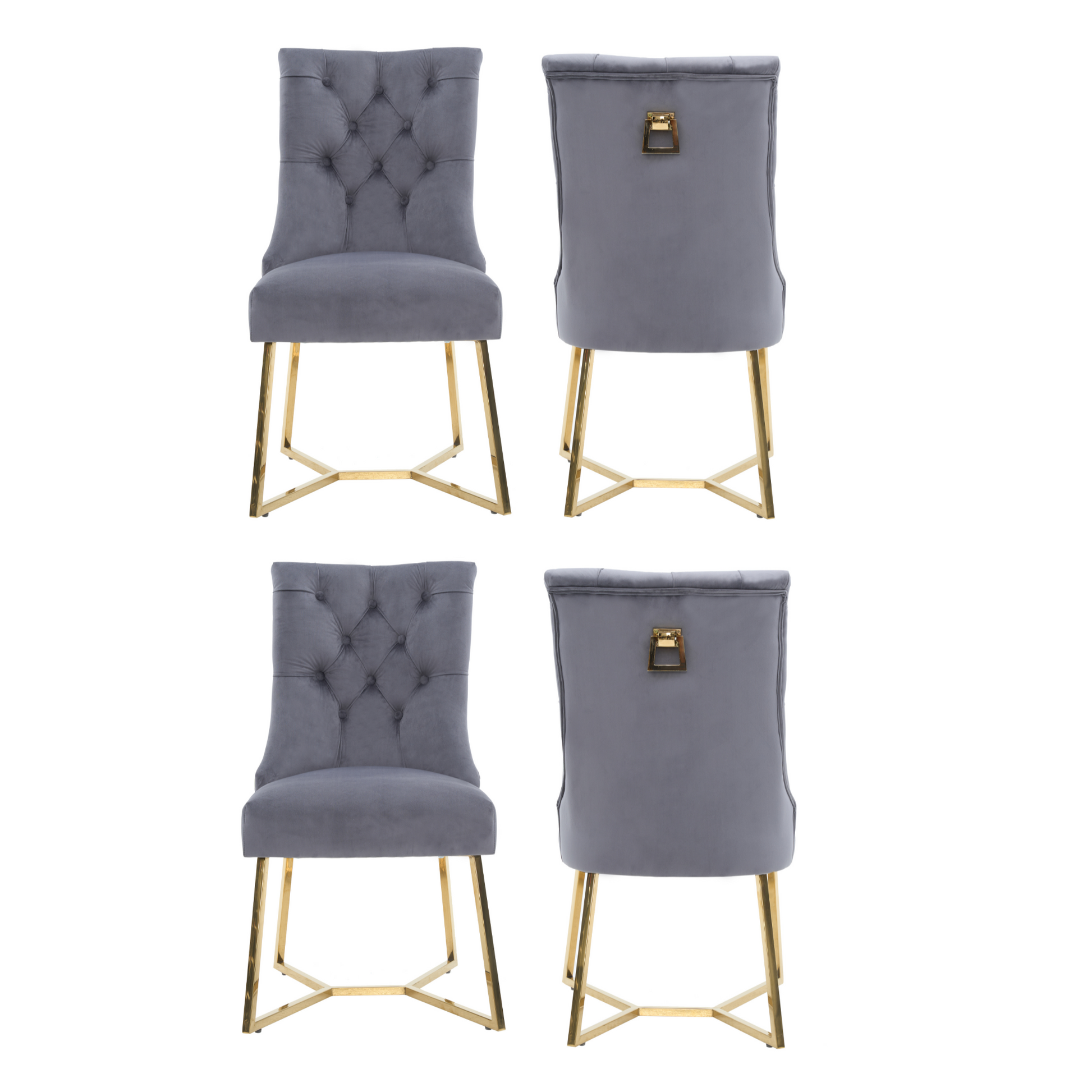 Ambra Velvet Dining Chair – Tufted Luxury Accent with Gold Legs & Ring Pull
