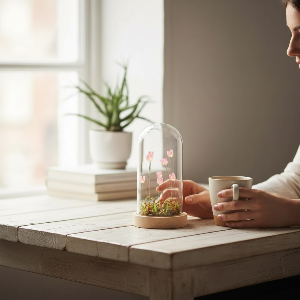 Why choose Flora Wonderland? It’s about more than light—it’s a tactile piece of décor that adds atmosphere, not clutter. The glass and wood pairing feels crafted and premium, elevating everyday spaces into a cozy retreat. Perfect for seasonal displays, intimate dinners, or as a thoughtful gift for someone who loves a soft, refined glow.