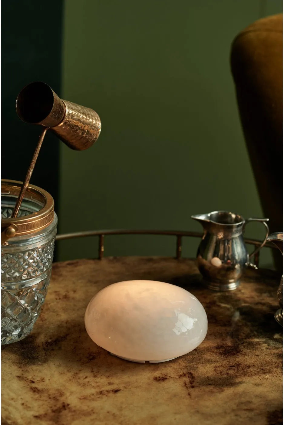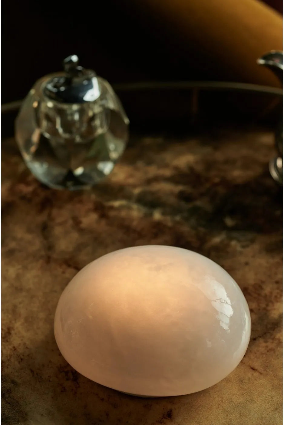 - Portable, cord-free design with a graceful glass silhouette that complements shelves, nightstands, or desks without dominating the scene.