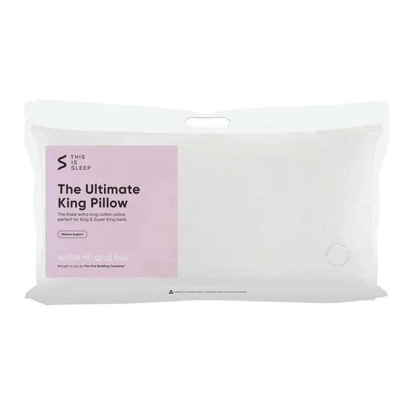The Ultimate King Pillow is our finest extra long cotton pillow, perfect for King and Super King beds. This luxurious medium support pillow is designed for back and side sleepers, so you can wake up feeling refreshed each morning.